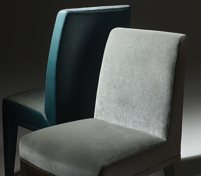 Der Esszimmerstuhl „Agnes“ verkörpert den Promemoria-Stil in Reinform, der sich durch Komfort und luxuriöse Details auszeichnet.