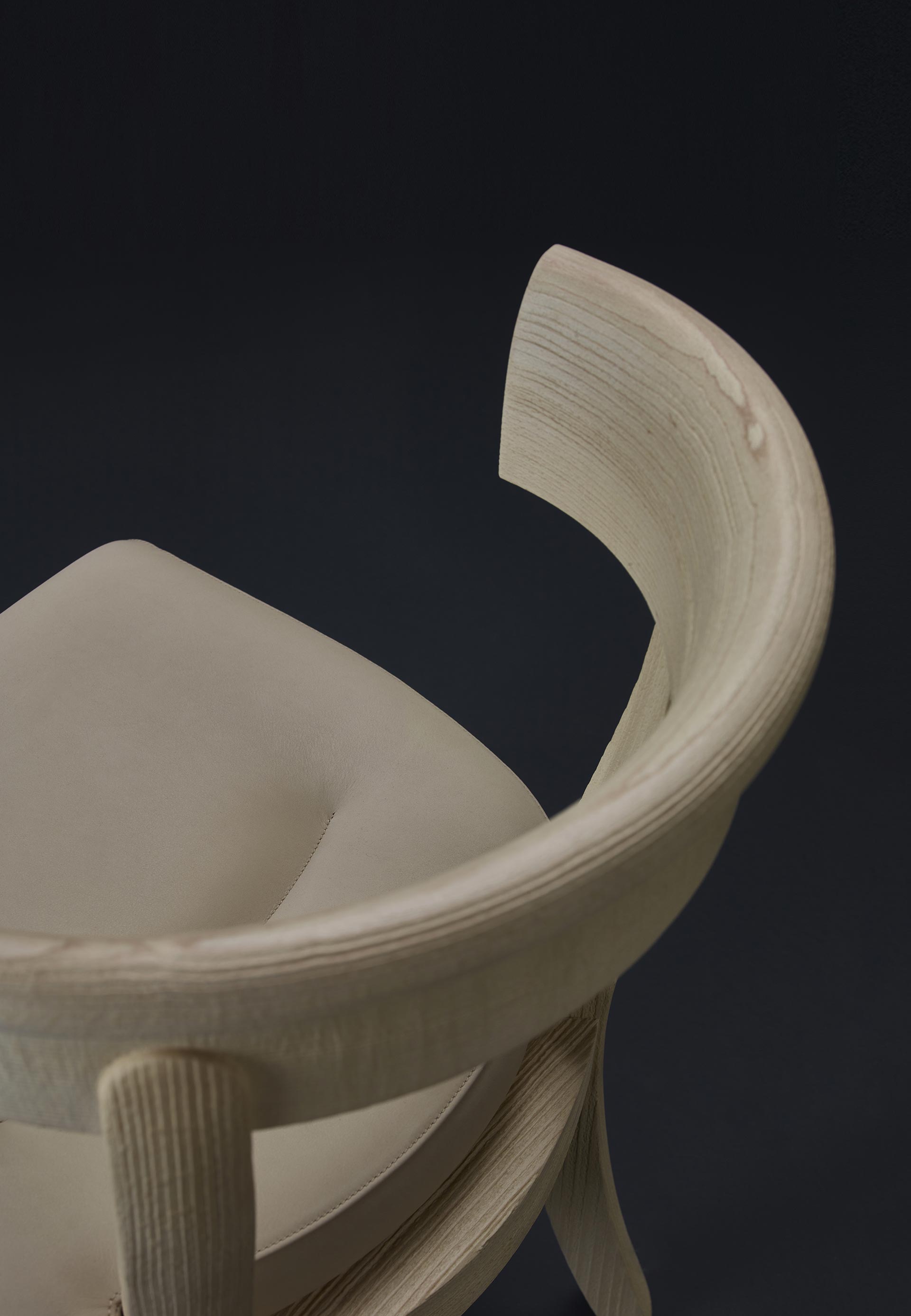 Irene is a dining chair with a semi-circle frame and back in beechwood, with upholstered seat. Available with saddle stitches.