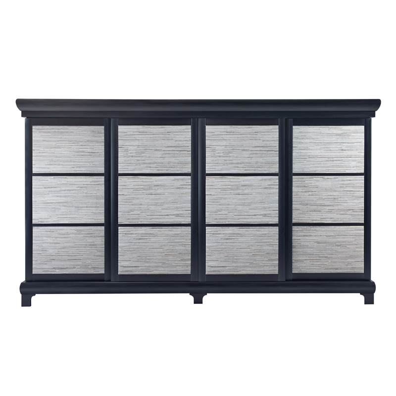Joseph is a low cabinet available in various wood types. Its modular core makes it possible to obtain a piece of furniture suitable for all environments: from a few modules it is possible to build a huge piece of furniture. The silhouette was designed to obtain a great lightness effect: flared at the ends and with a top, it follows the curved lines of the furniture, creating a slight bezel at the edges. The design is completed by leather open compartments, repositionable glass shelves, bronze spacers and recessed handles. Joseph is available with a statuary marble top.