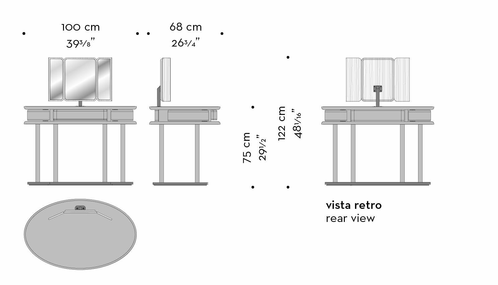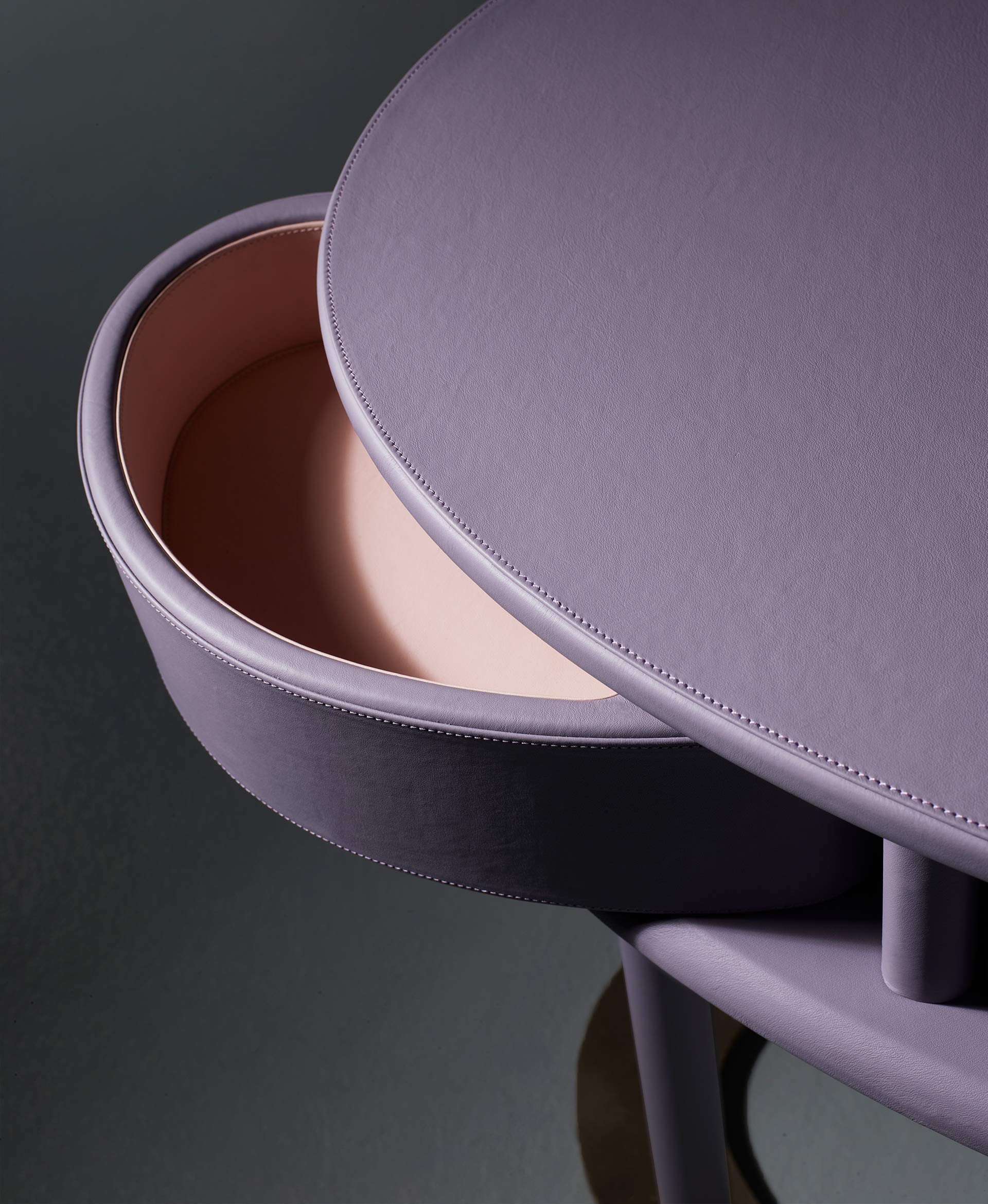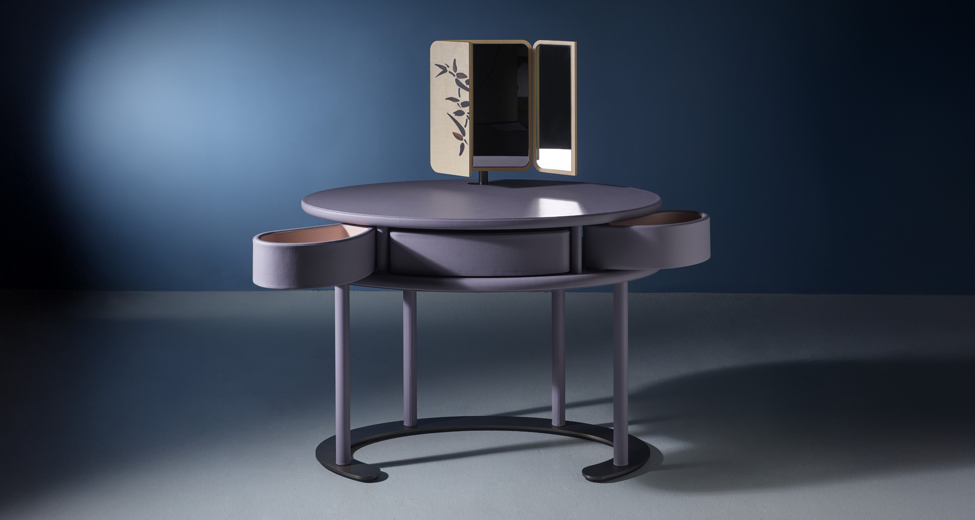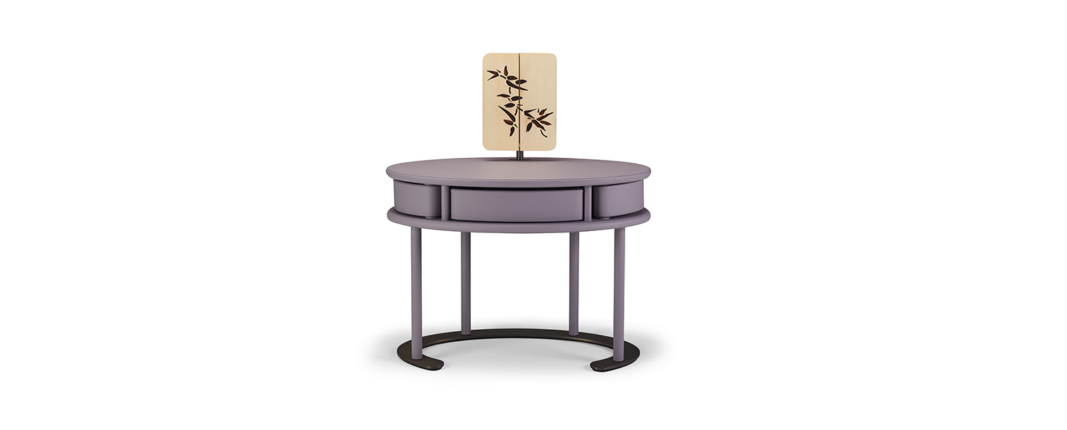 Il Vanity Desk Afrodite nasce come un rituale quotidiano trasformato in oggetto. Secondo il mito, Afrodite emerge dalla spuma marina, portando con sé un’idea di bellezza naturale e spontanea, mai ostentata. Allo stesso modo, questo vanity desk custodisce e rivela: chiuso si presenta come un volume compatto e prezioso, quasi una conchiglia; aperto, si trasforma in uno spazio intimo dedicato alla cura di sé, dove ogni gesto diventa parte di un rituale personale. I cassetti rivestiti in pelle evocano una bellezza sorprendente, che si svela poco a poco. Lo specchio, che si apre e si richiude come un piccolo teatro personale, completa questo racconto, trasformando ogni momento in un’esperienza intima e raccolta.