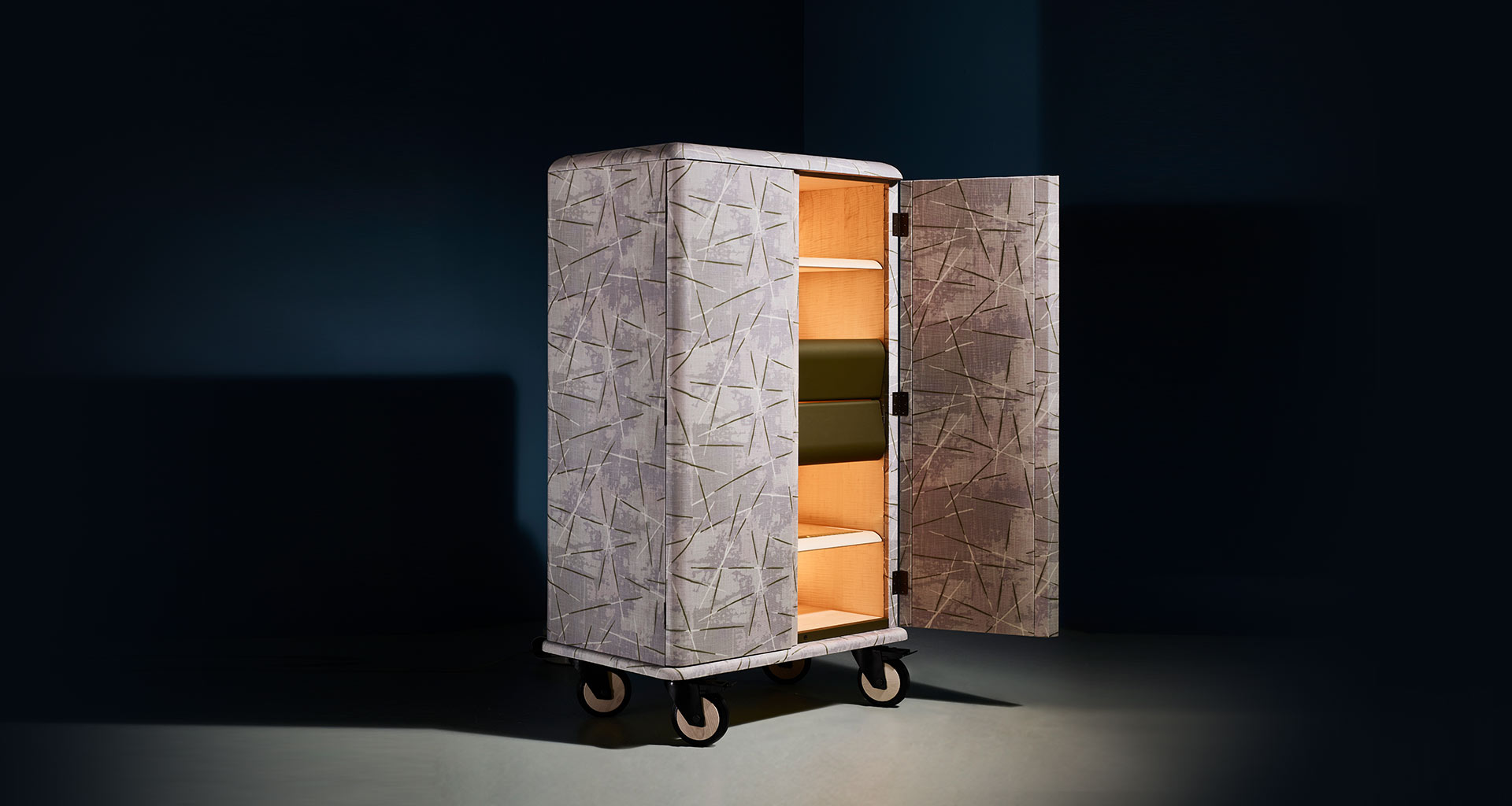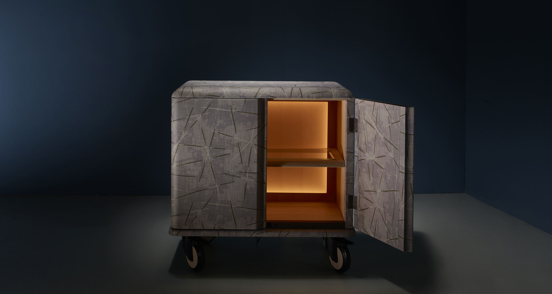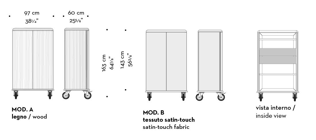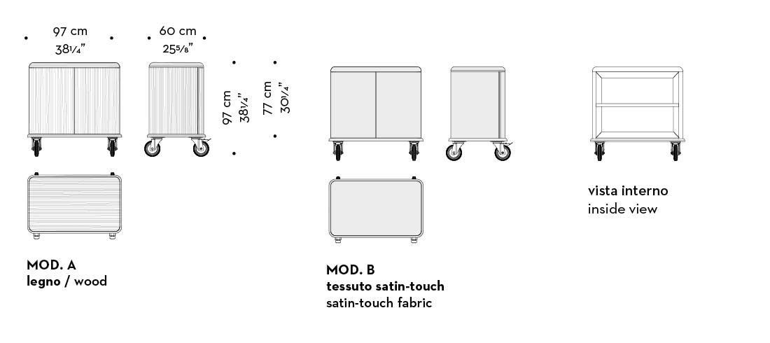 Dotate di pratiche ruote, entrambe possono muoversi con leggerezza all’interno dello spazio, trasformando ogni spostamento in un piccolo percorso da vivere nella casa. Grand Tour è rivestita in tessuto, con angoli arrotondati e forme armoniche che regalano morbidezza e continuità visiva. Elegante, giocosa e leggera nel movimento, Grand Tour porta ordine e un tocco di personalità in ogni angolo della casa.