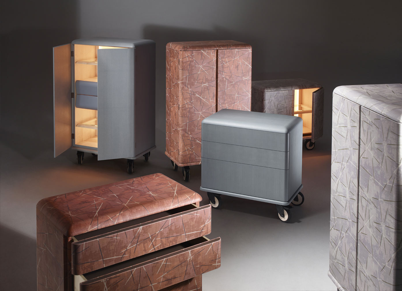 Prendendo ispirazione dal concetto di viaggio, Grand Tour riflette la libertà di movimento che caratterizza tanto la cassettiera quanto la madia.