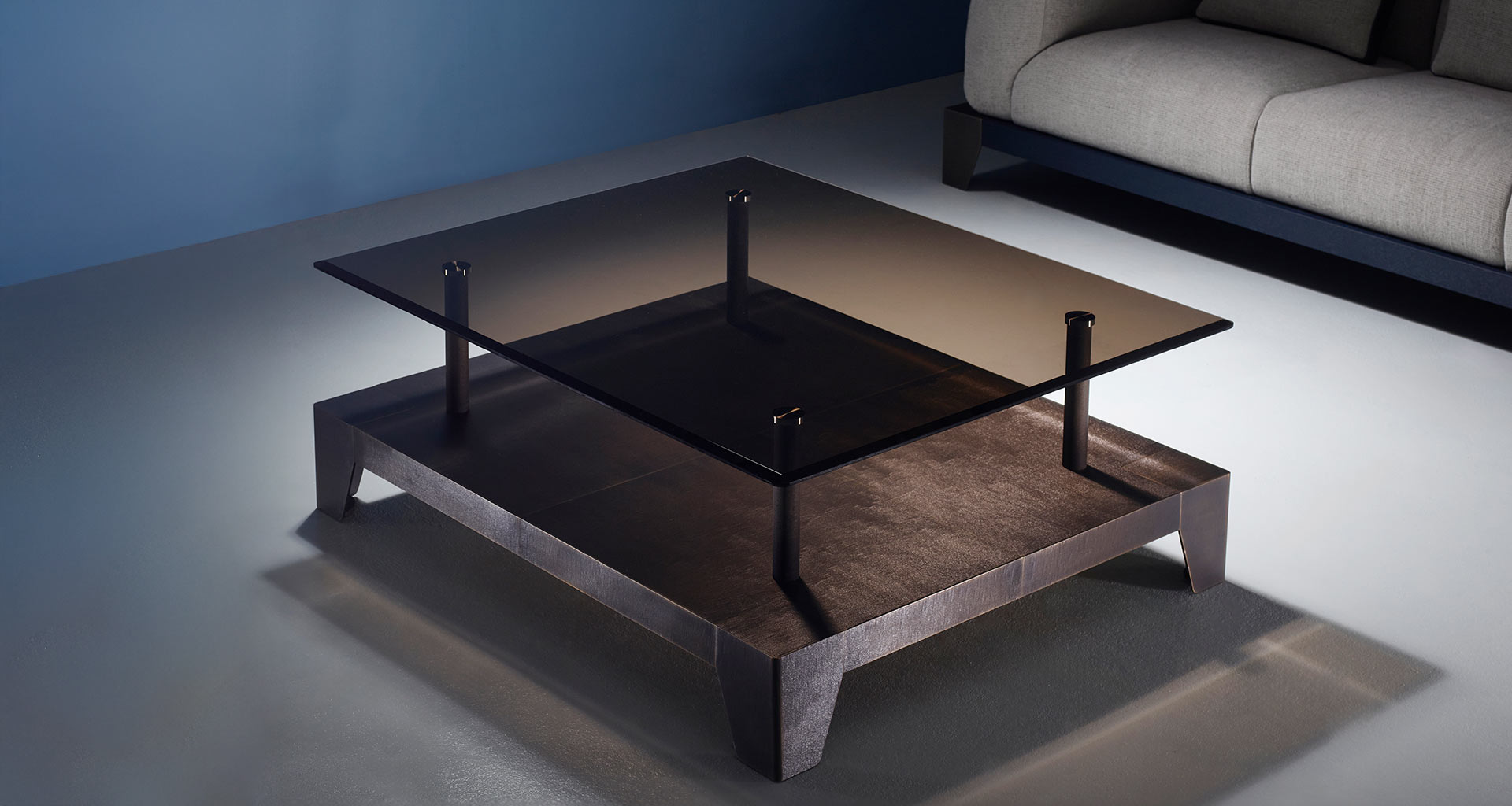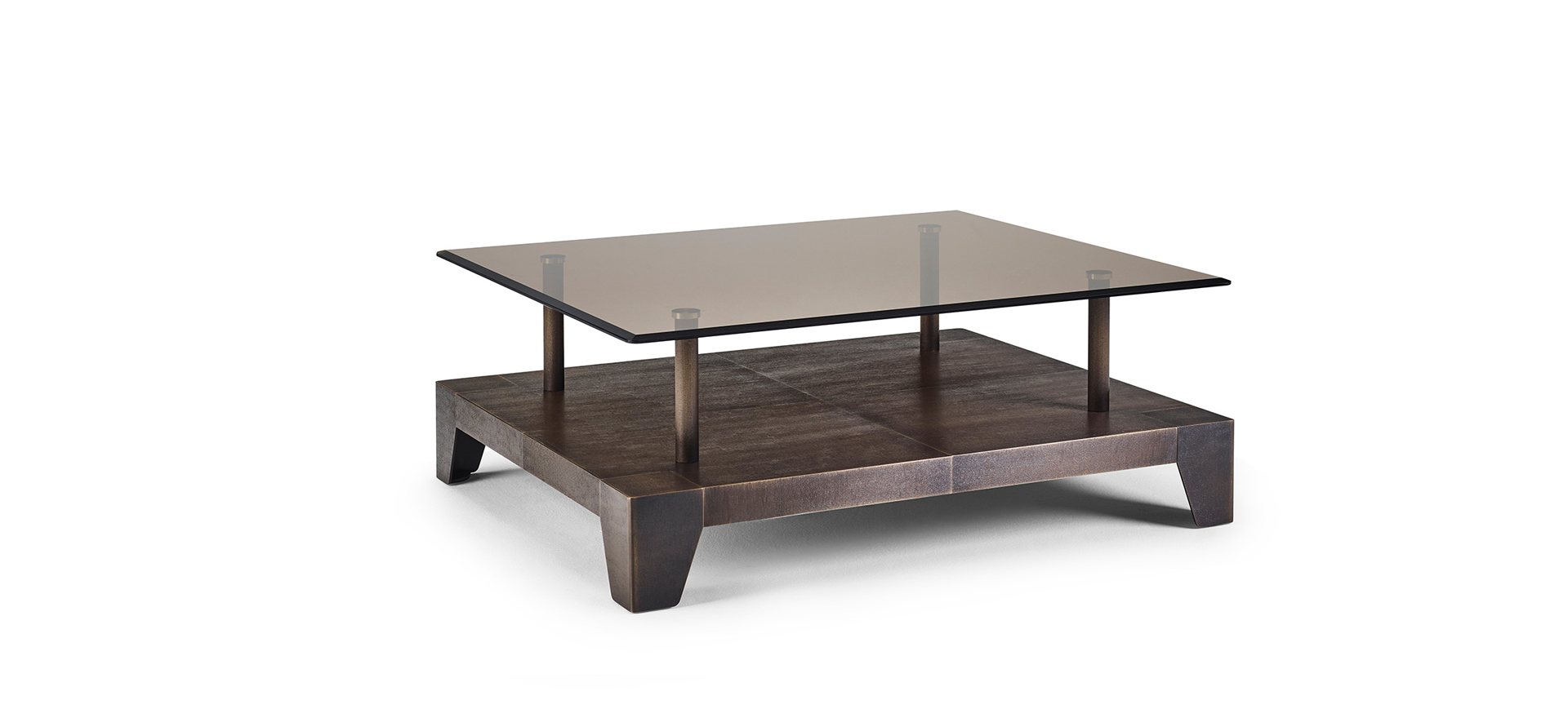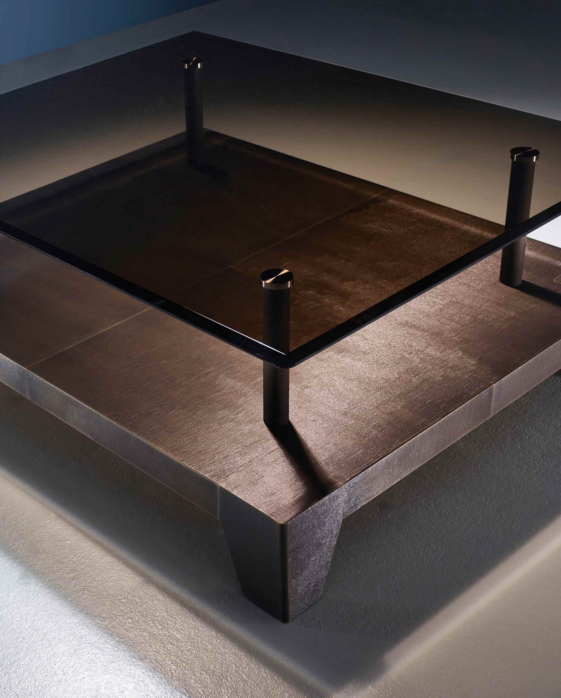 Il tavolo basso Laren, realizzato in collaborazione con lo studio olandese Marcel Wolterinck, unisce linee pulite alla preziosità dei dettagli tipica di Promemoria. Il piano in vetro trasparente si sovrappone a una base in legno, i cui bordi sono arricchiti da eleganti scanalature, mentre il bronzo completa la composizione dando vita a piedi d’appoggio dal carattere scultoreo. Ne nasce un fluido equilibrio di sensibilità e ricchezza materica che richiama le atmosfere della pittura del Secolo d’Oro olandese.