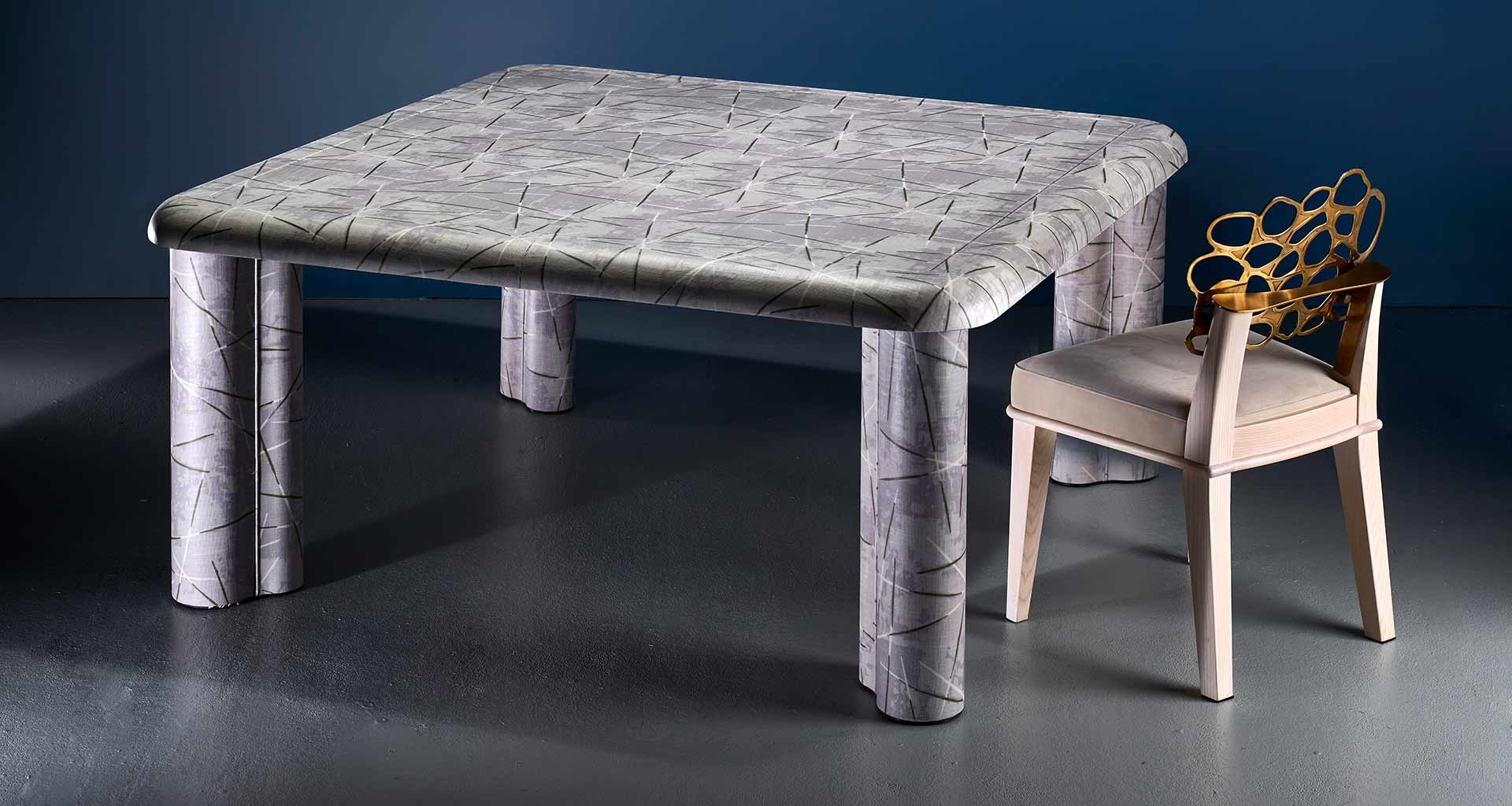 Il nome richiama Ovidio e le sue Metamorfosi: come nell’opera letteraria, anche questi tavoli esprimono un’idea di trasformazione continua, mutando identità nelle diverse proporzioni e rivestimenti in cui viene realizzato.