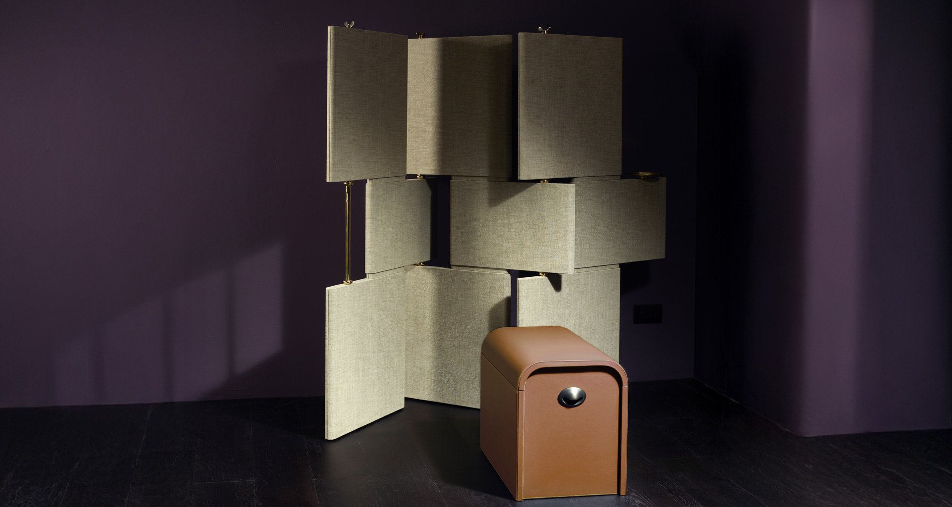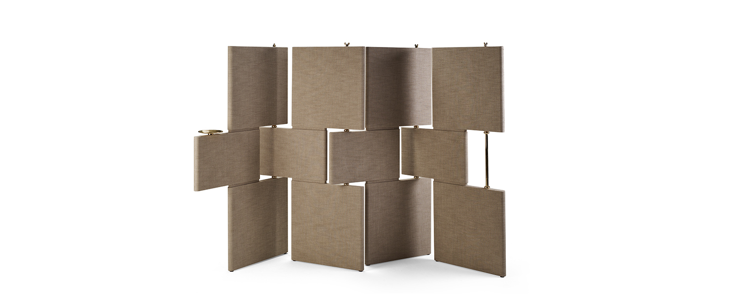 Il paravento Se-paré custodisce un profondo senso di protezione e armonia, dato dal tessuto di cui è rivestito.